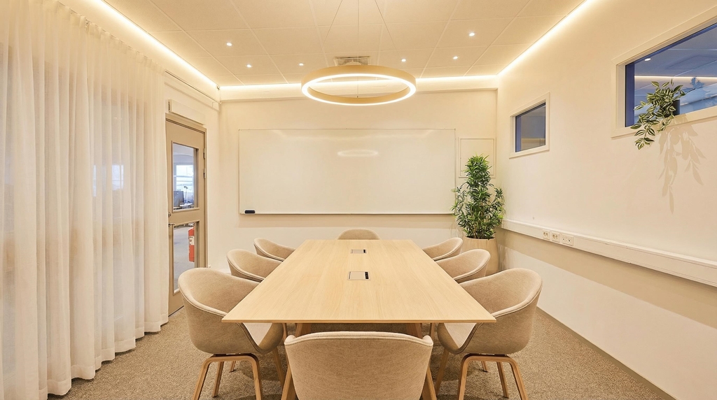 Lokalen erbjuder generösa kontorsytor med öppna arbetsytor placerade längs fönsterrader i flera väderstreck, vilket ger ett fint ljusinsläpp och en ljus och luftig arbetsmiljö. Det finns tre mötesrum i varierande storlekar, från mindre samtalsrum till ett större konferensrum anpassat för presentationer och styrelsemöten. Därutöver finns tre mindre samtalsrum, väl lämpade för mindre grupper eller enskilda samtal.