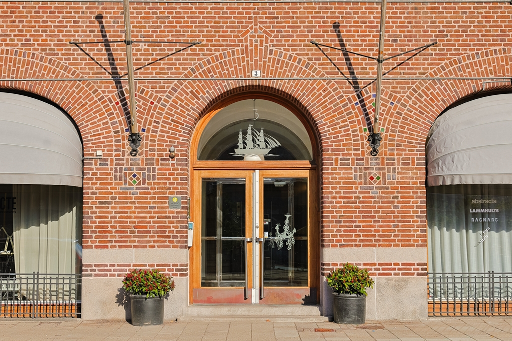 Alldeles vid Posthusplatsen och med utblick över hamninloppet ligger denna palatsliknande byggnad från 1910. Fastigheten kännetecknas bland annat av sin karaktäristiska gavel, vackra fönster och koppardetaljer, eleganta balkonger och en enastående rikt mönstrad tegelfasad. Byggnaden är genomgående varsamt renoverad och erbjuder moderna kontor och butikslokaler i klassisk miljö, med en mängd originaldetaljer och charmen från förra sekelskiftet bevarad.