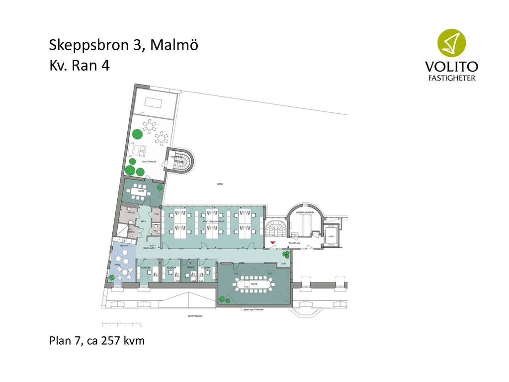 Lokalen erbjuder ett stort kontorslandskap med plats för upp till 12 arbetsplatser och 3 separata kontorsrum. Här finns också ett rymligt konferensrum för upp till 16 personer, mötesrum för upp till 8 personer, perfekt för möten och presentationer, samt teamsrum.