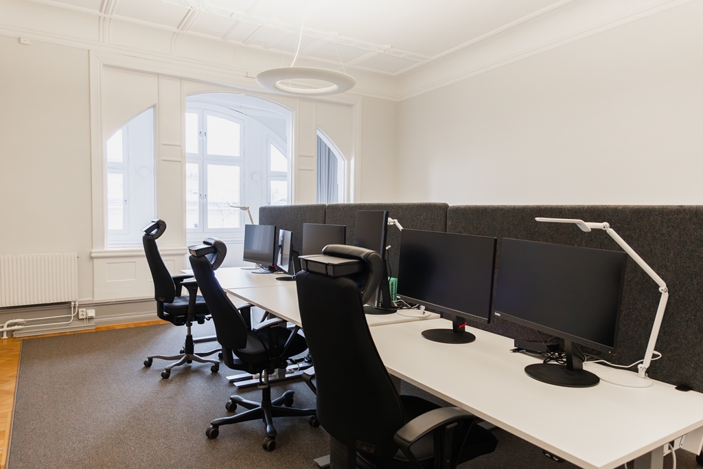 Önskar du en arbetsplats där ni kan njuta av både inomhus- och utomhusmiljöer? Med två balkonger och en lummig innergård är det enkelt att ta en paus i friska luften eller bjuda in till avslappnade möten.
